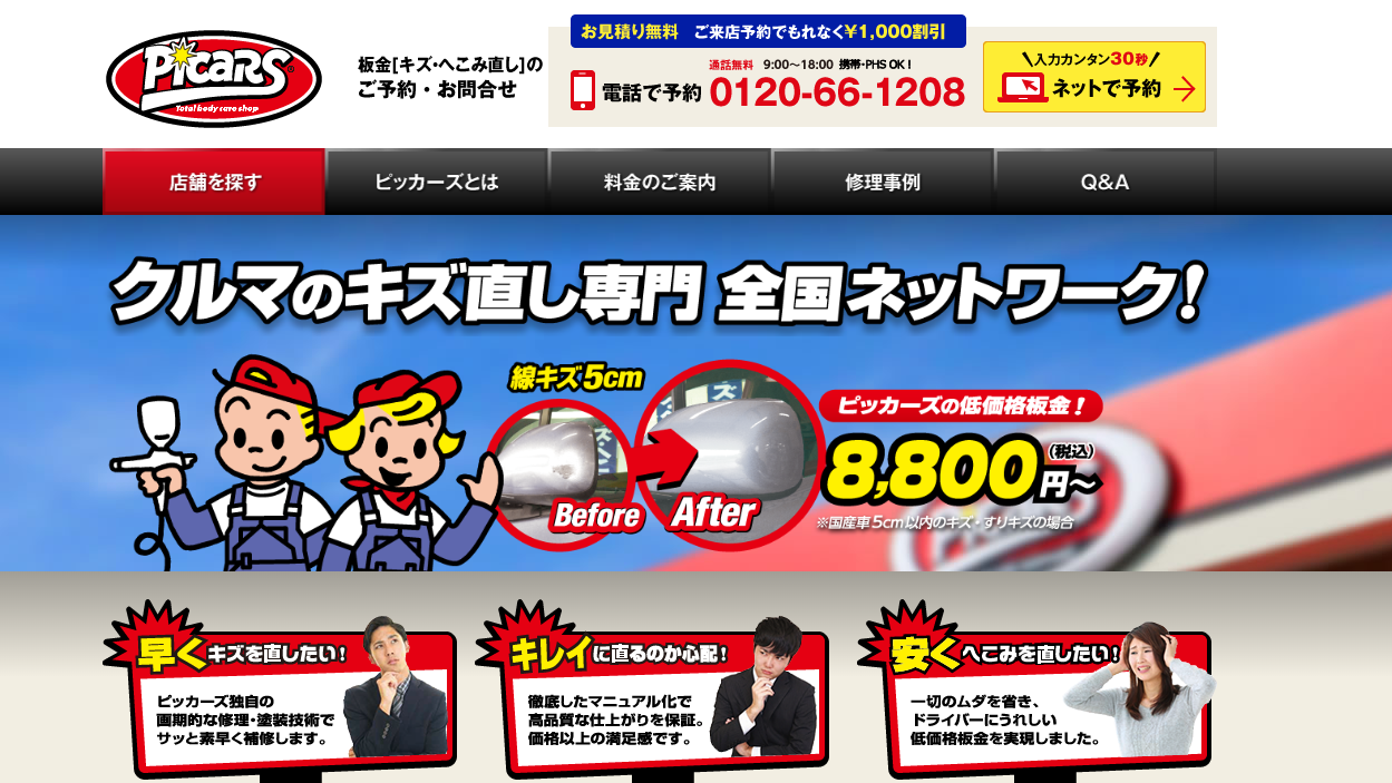 ピッカーズは、神奈川県横浜市を中心に全国にFC店舗を展開している板金修理の業者です。